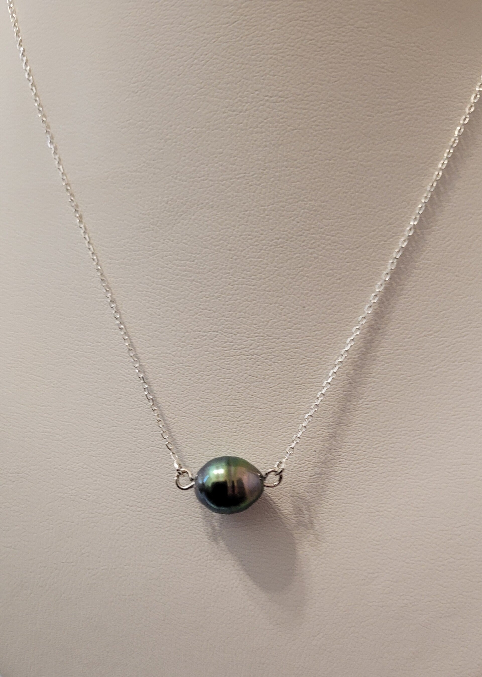 Collier 42cm avec anneau de raccourcissement en argent 925 véritable perle de tahiti.