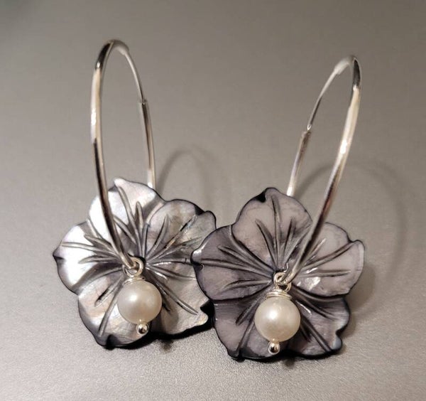 Boucles d'oreilles créoles 31mm en argent 925 véritables perles de culture d'eau douce et véritable nacre.