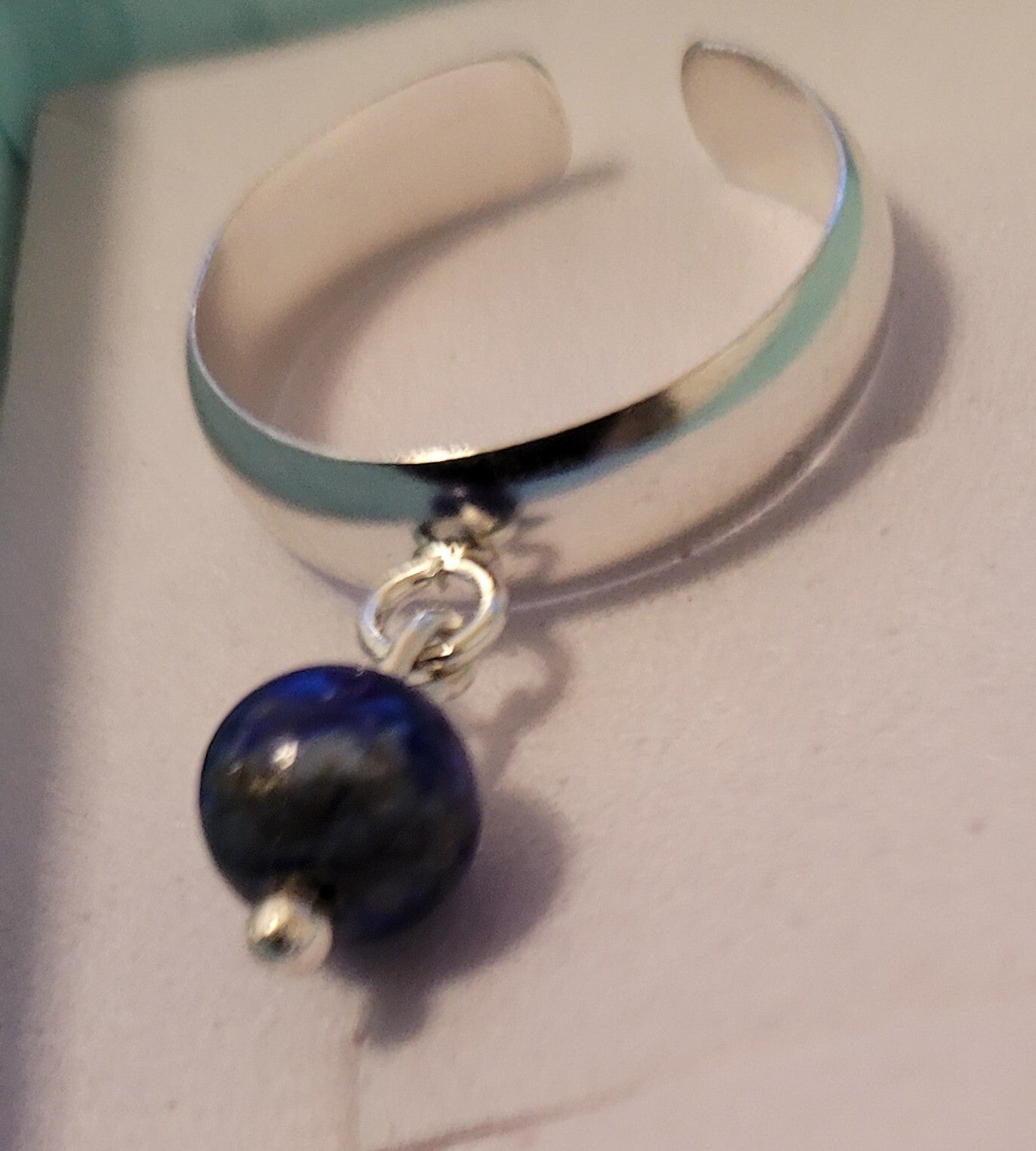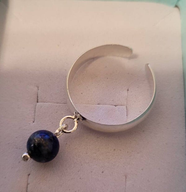 Bague en argent 925 réglable de la taille 54 à 60 et véritable perle naturelle pierre gemme Lapis Lazuli.