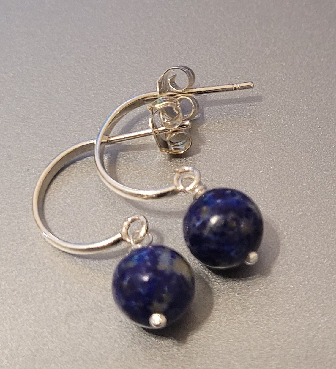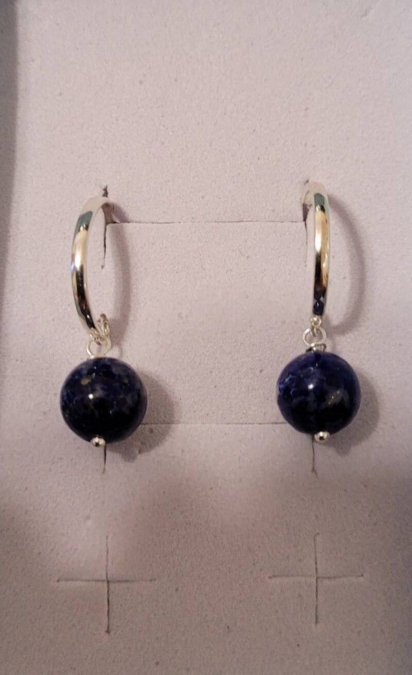 Boucles d'oreilles en Argent 925 demi créoles véritables perles naturelles pierre gemme Lapis Lazuli.