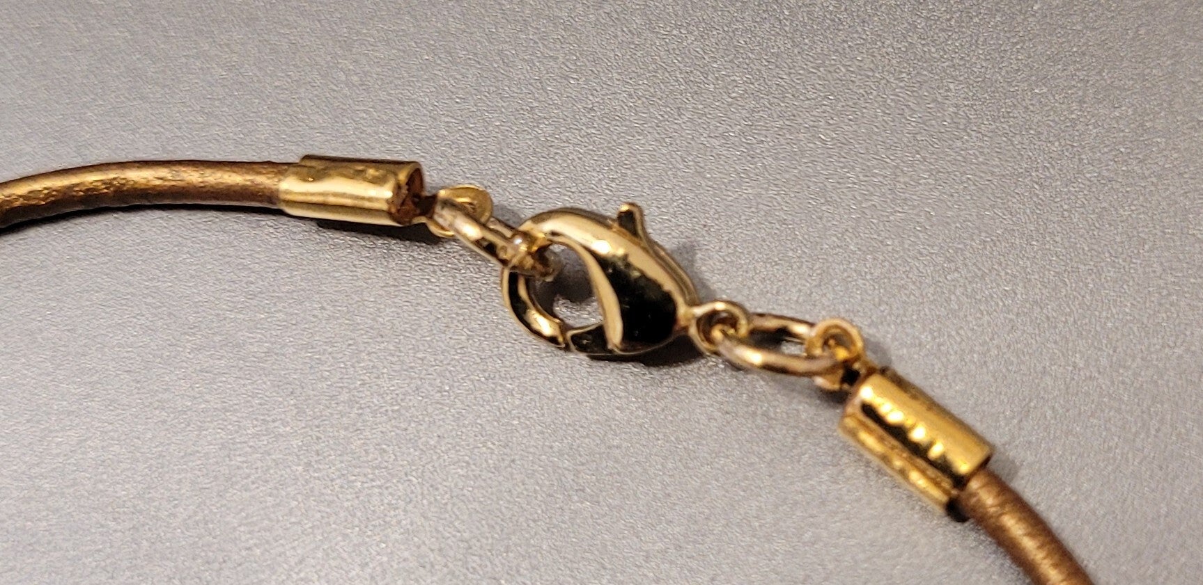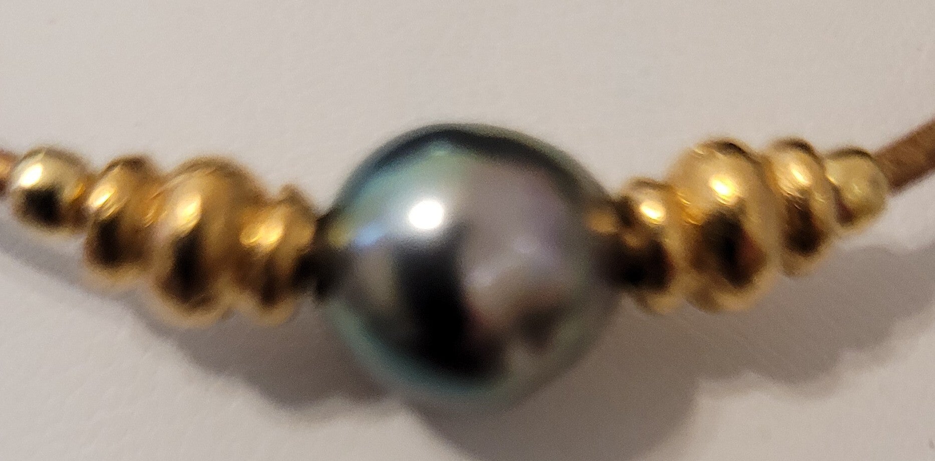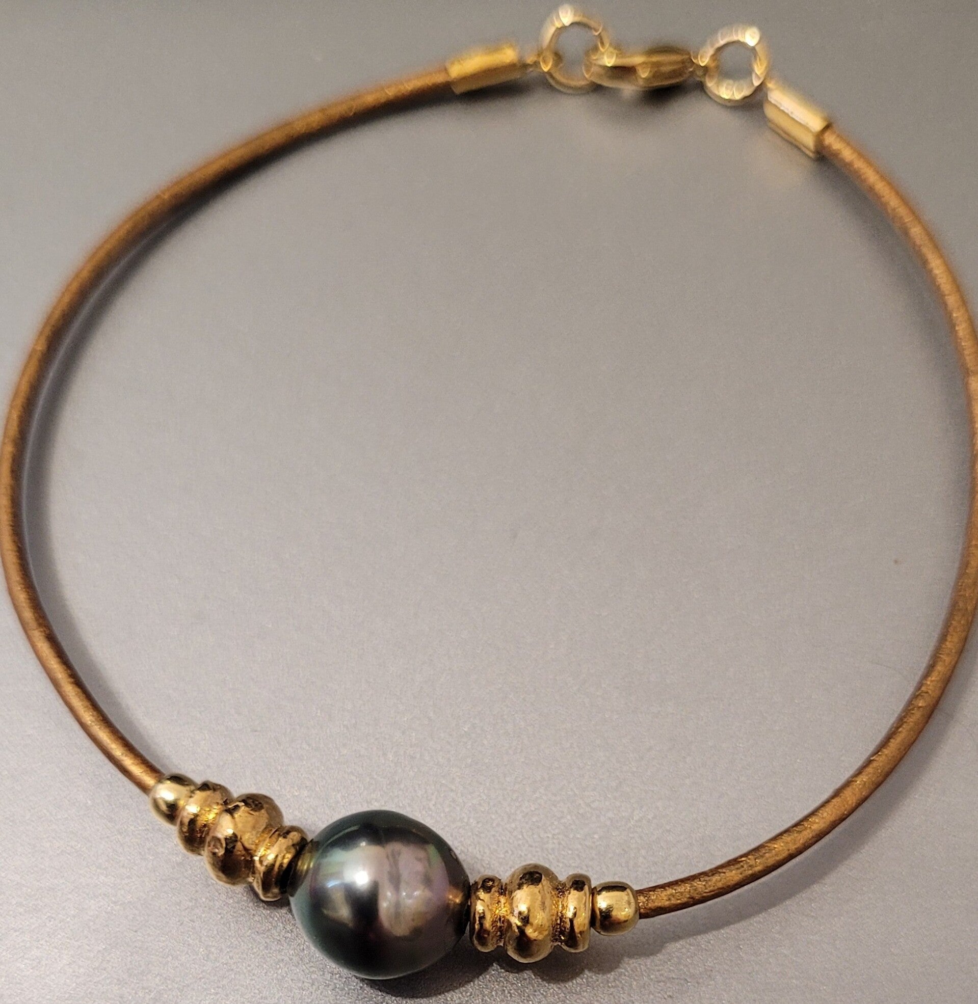 Bracelet 19,5cm en cuir bronze métallisé véritable perle de tahiti couleur peacock diamètre 9mm qualité B très beau Lustre et perles en plaqué or fermoir mousqueton plaqué or.