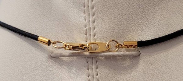 Collier ras du cou 42cm en cuir noir céramique et perles en Plaqué or fermoir mousqueton en Plaqué or