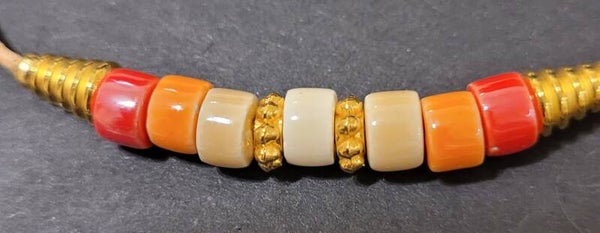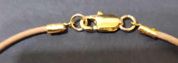 Bracelet en cuir naturel 19cm céramique et perles en plaqué or fermoir mousqueton en plaqué or