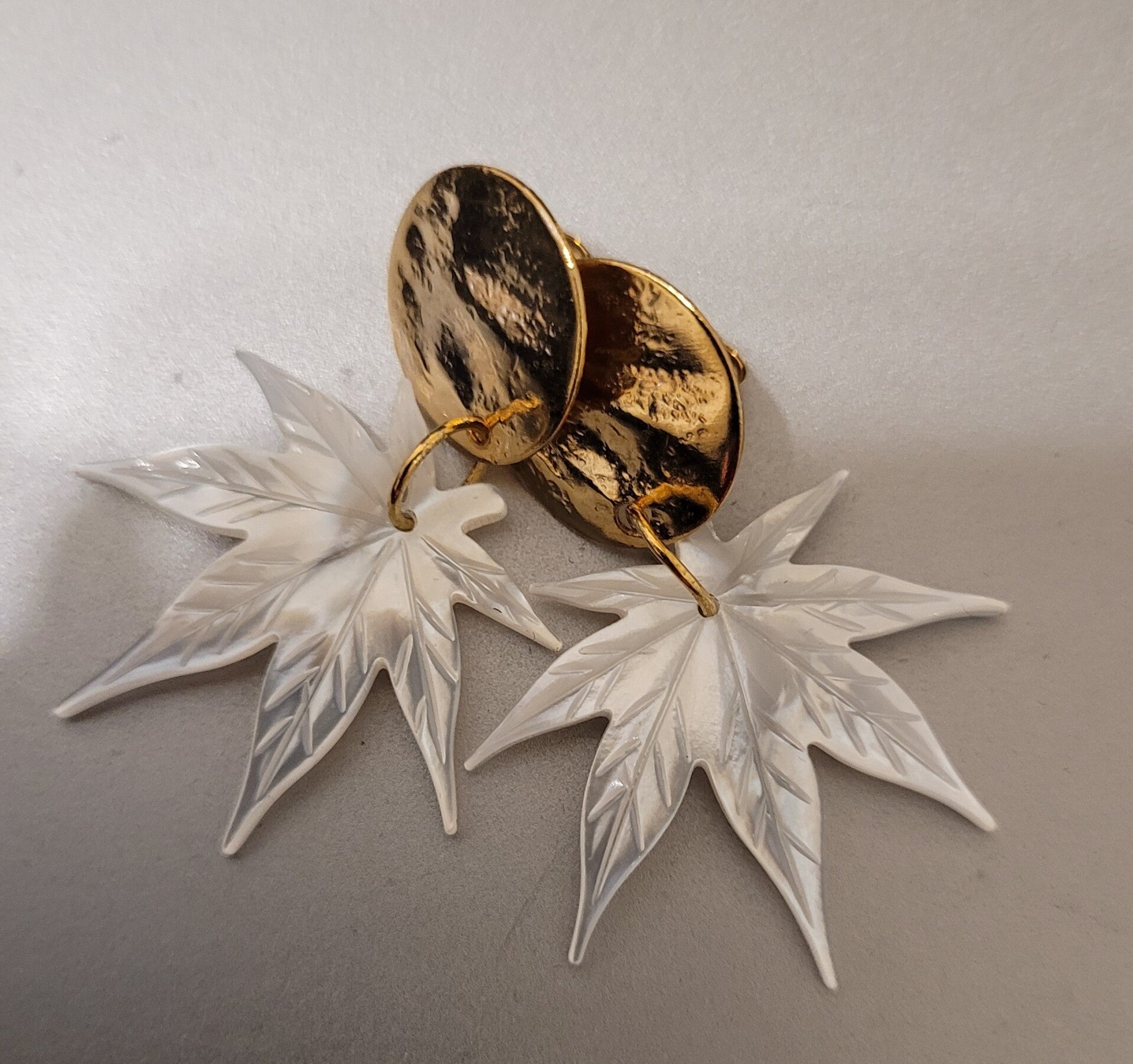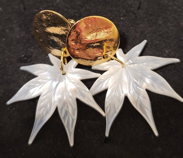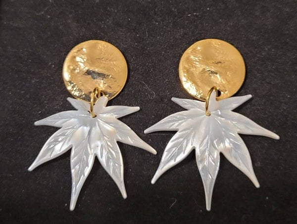 Boucles d'oreilles pendantes dorées à l'or fin véritable nacre.