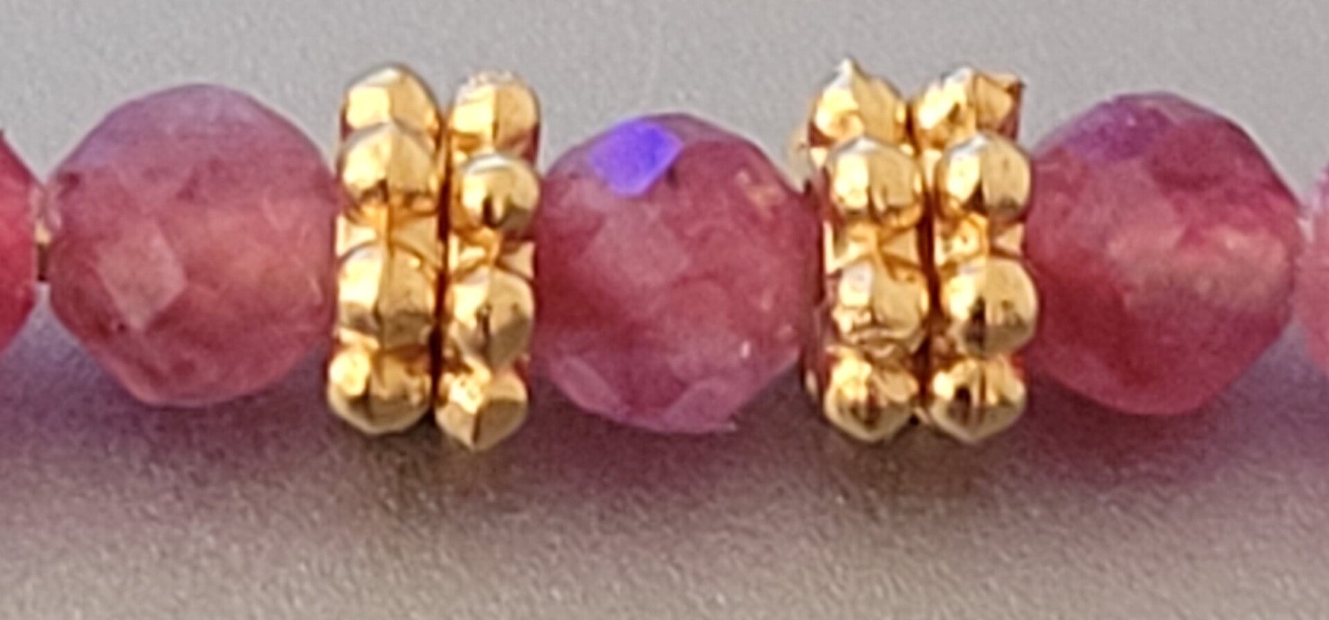 Bracelet 21cm ajustable en plaqué or 17cm et 4cm chainette d'extension véritables perles facettées pierre gemme tourmaline et perles en plaqué or.