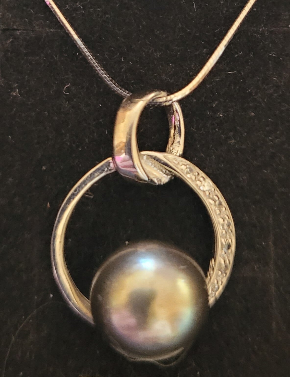 Collier 45cm en plaqué 925 pendentif perle de tahiti couleur peacock diamètre 9/10mm qualité AAA excellent Lustre et zircons
