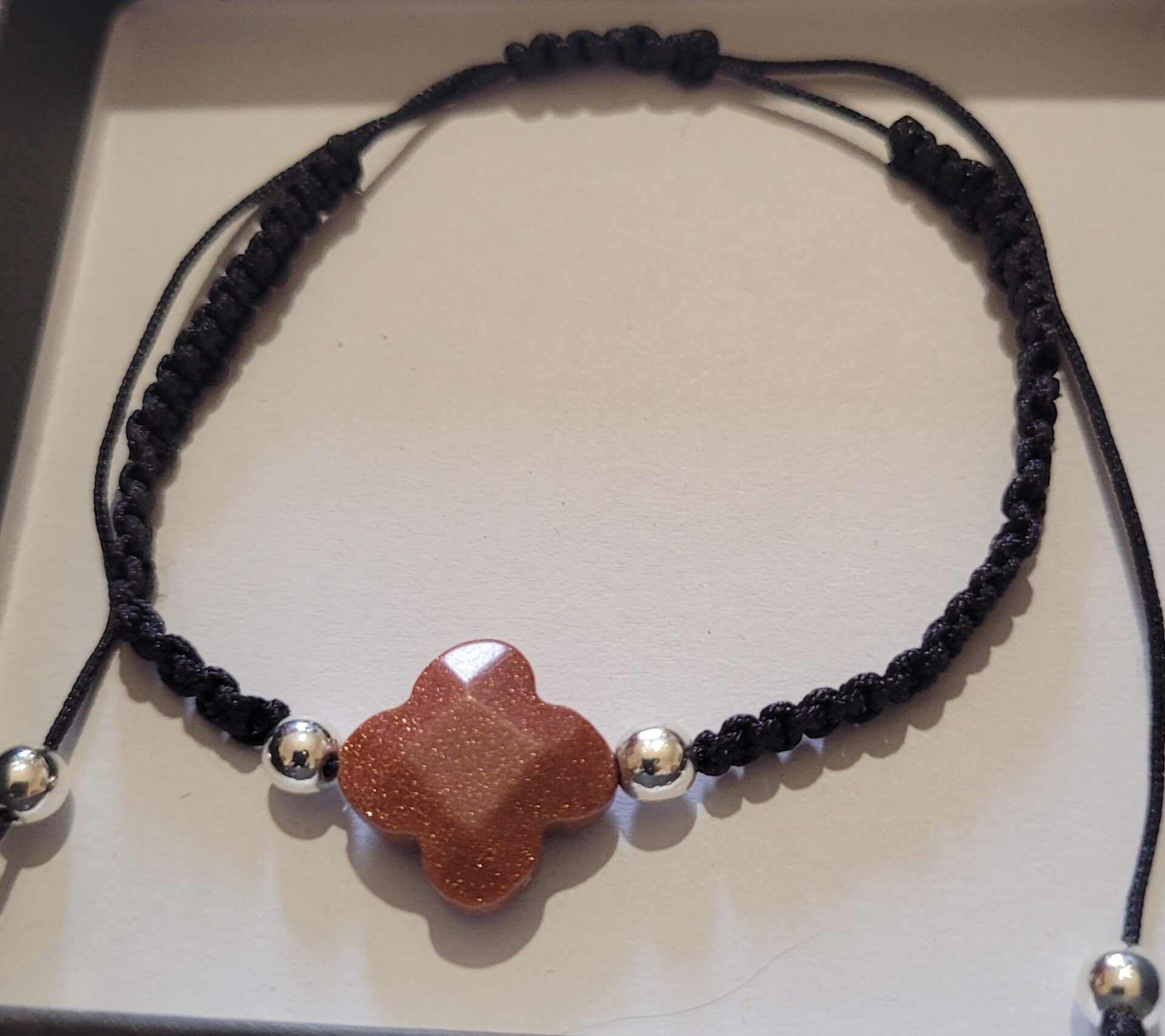 Bracelet tressé noir en nylon pierre de sable doré et perles en argent