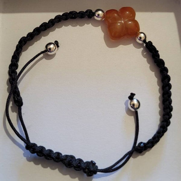 Bracelet noir réglable tressé en nylon pierre cornaline et perles en argent 925