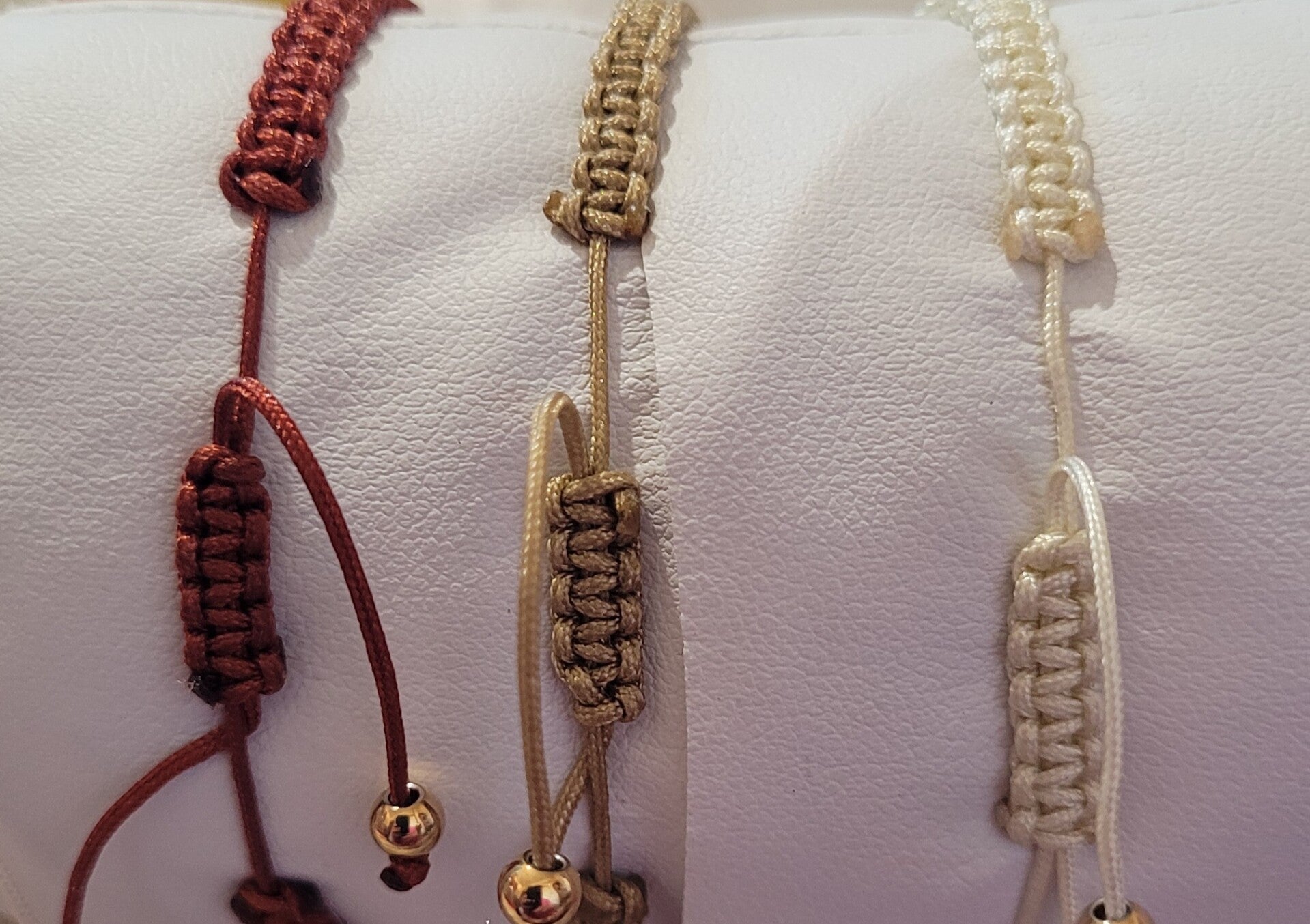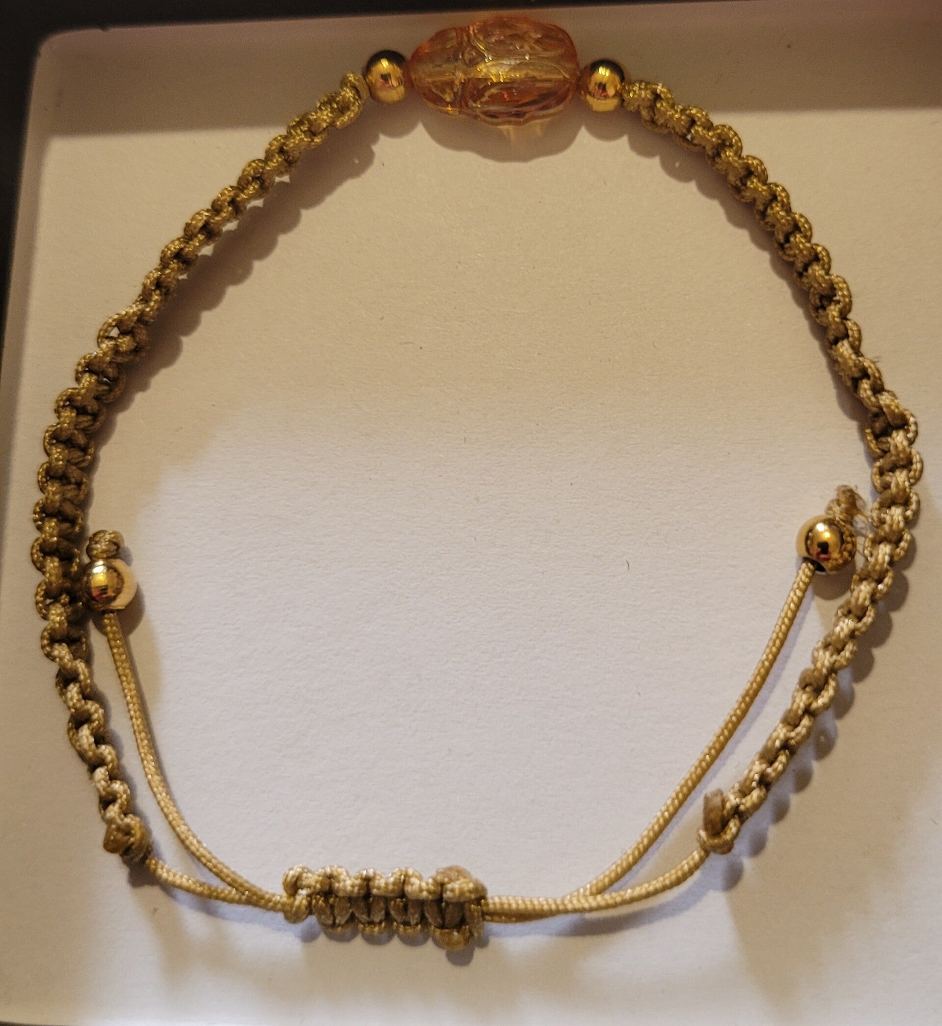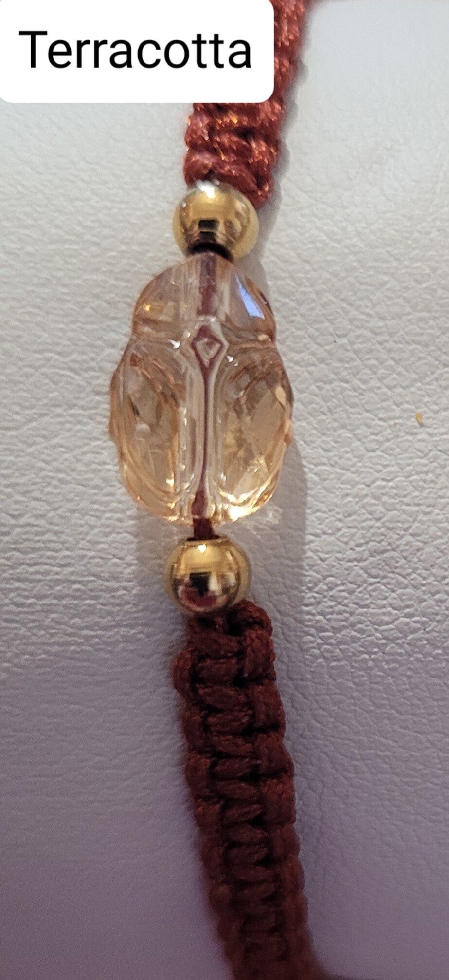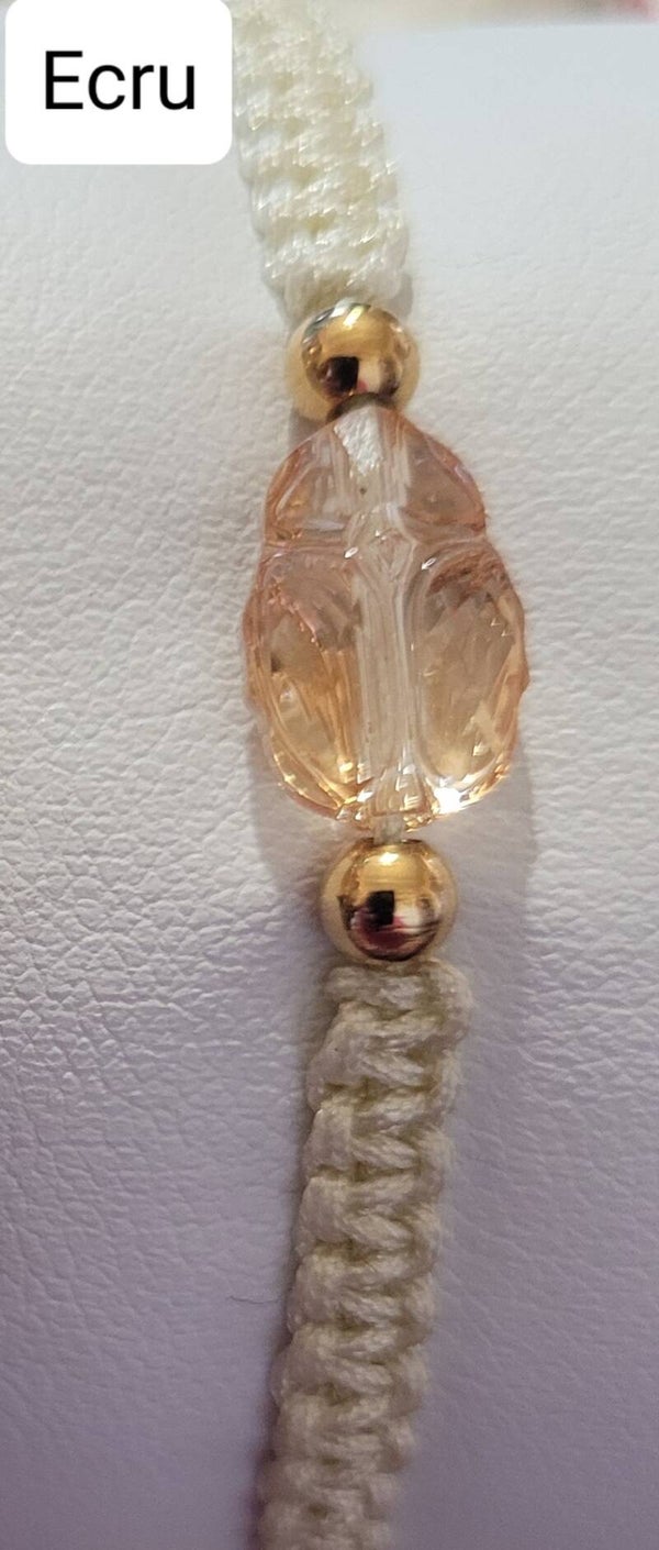 Bracelet ajustable par liens coulissants en nylon tressé scarabe en purecrystal golden shadow au choix 1 - écru ou 3 - terracotta ou en purcrystal metallic sunshine 2 - beige.