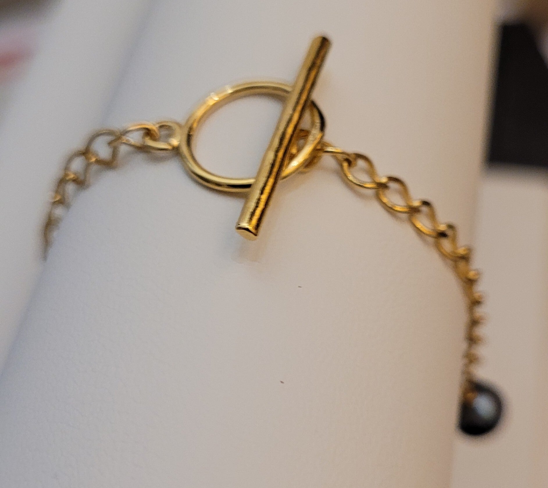 Bracelet 18cm plaqué or fermoir T et 3 véritables perles naturelles de culture d'eau douce