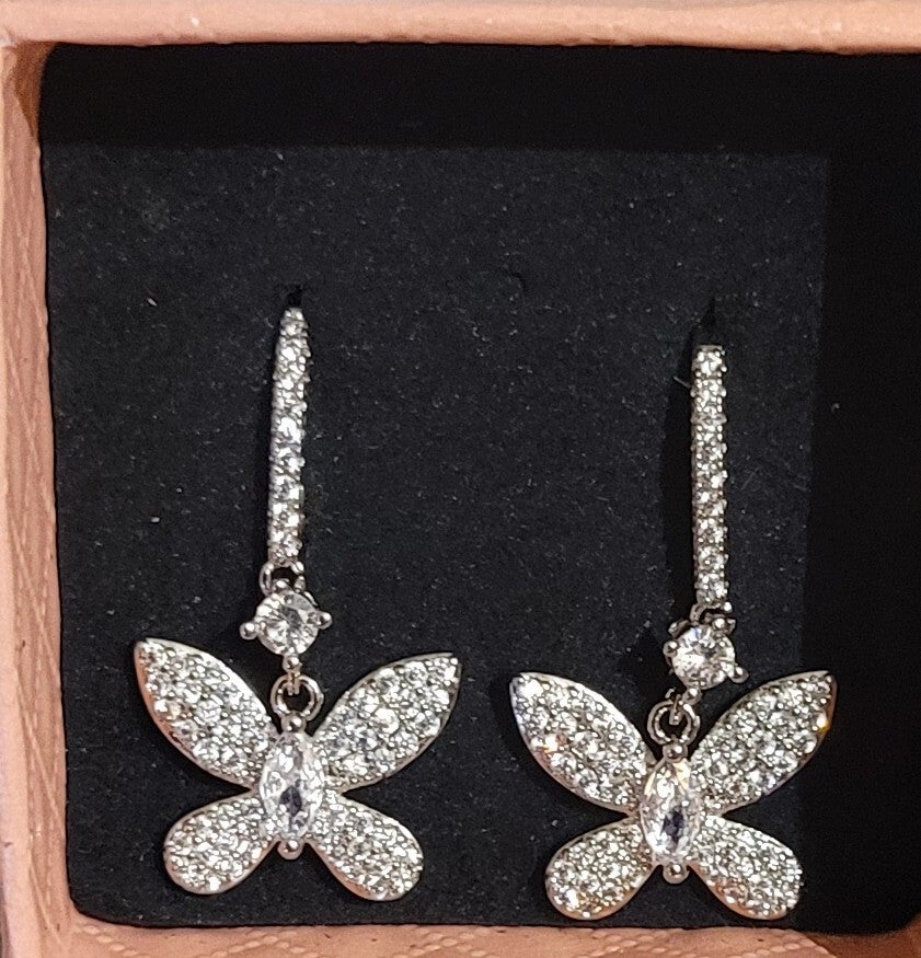 Boucles d'oreilles pendantes en métal argenté et zirconias