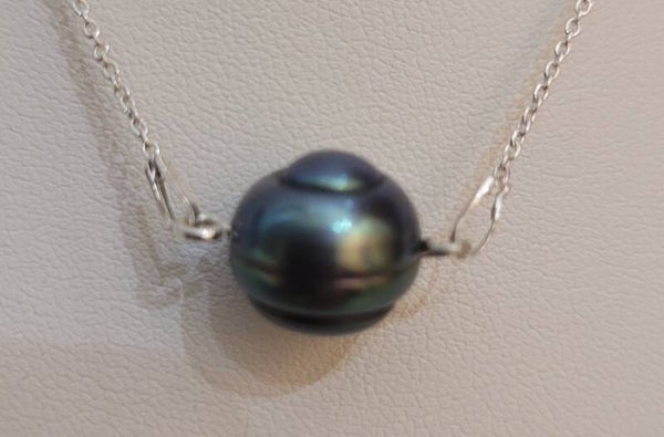 Collier 42cm ras du cou en argent 925 perle naturelle de culture d'eau douce cerclée de 10,7mm de diamètre