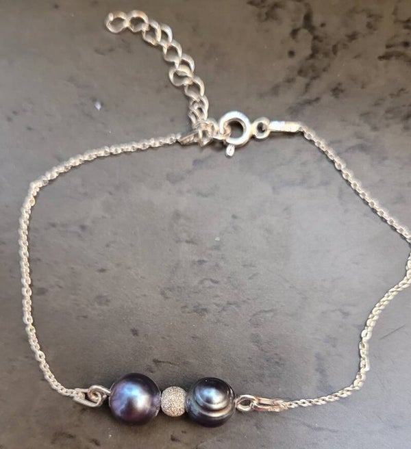 Bracelet 17cm et chainette 4cm réglable en argent 925 véritables perles naturelles et perle en argent