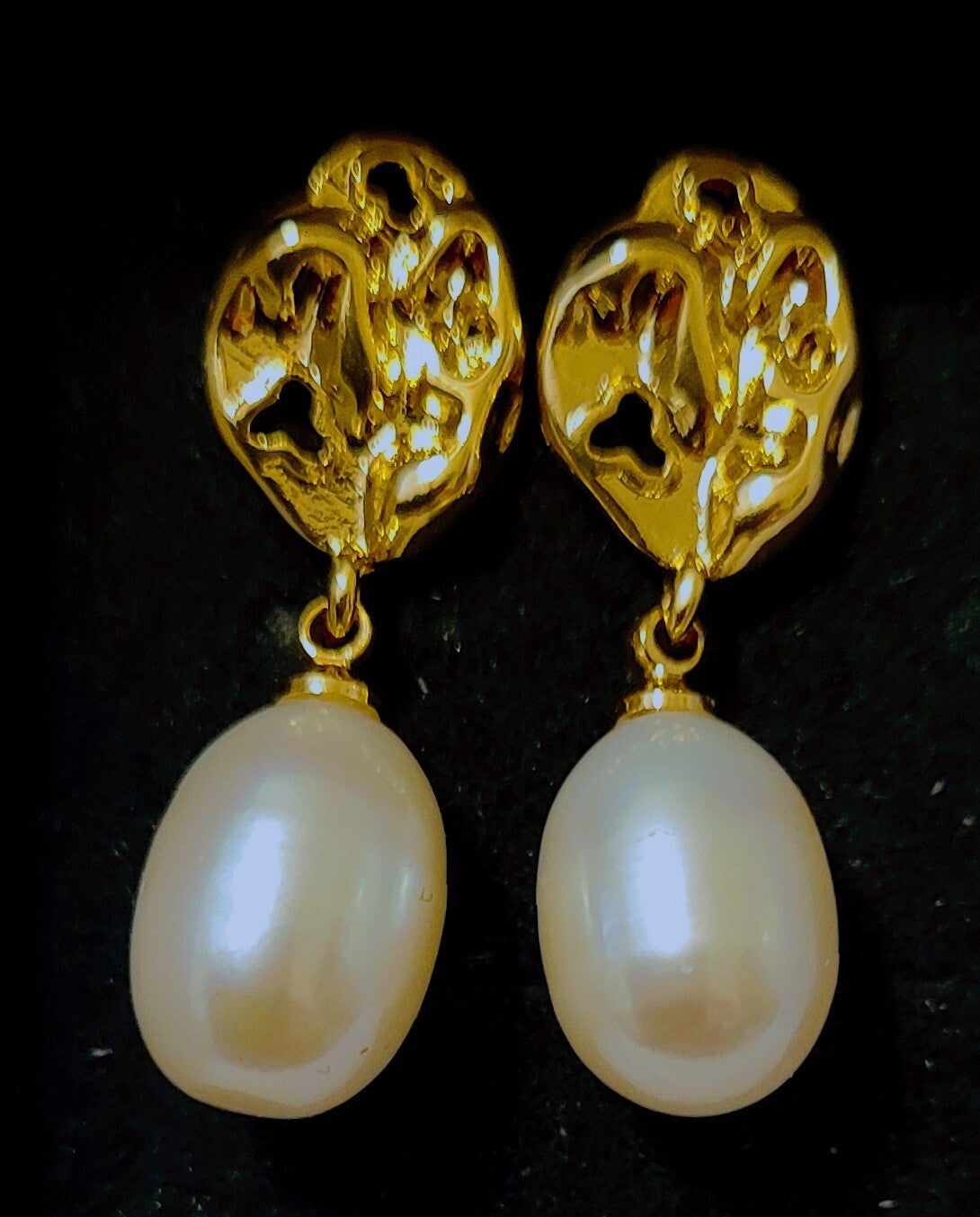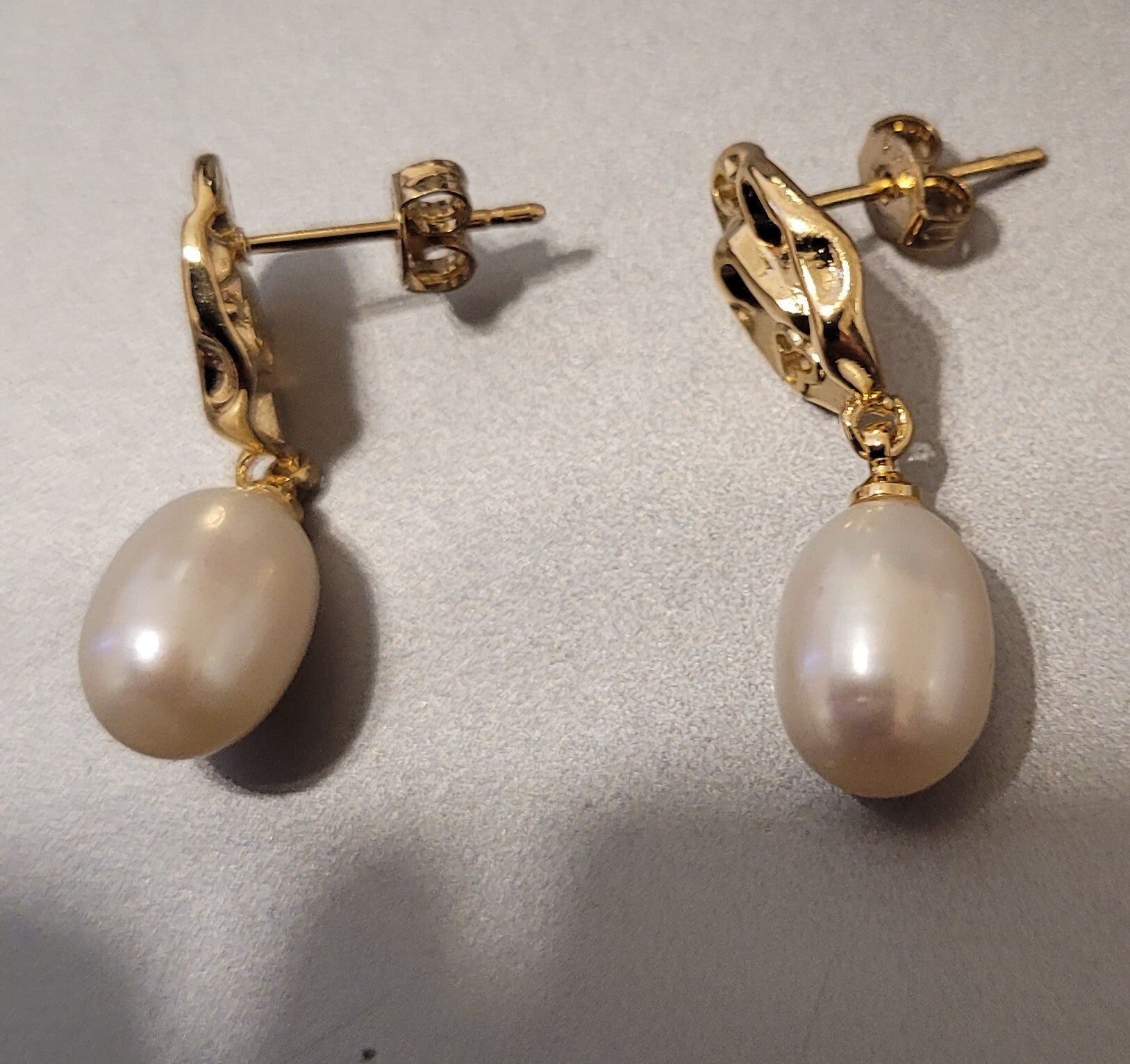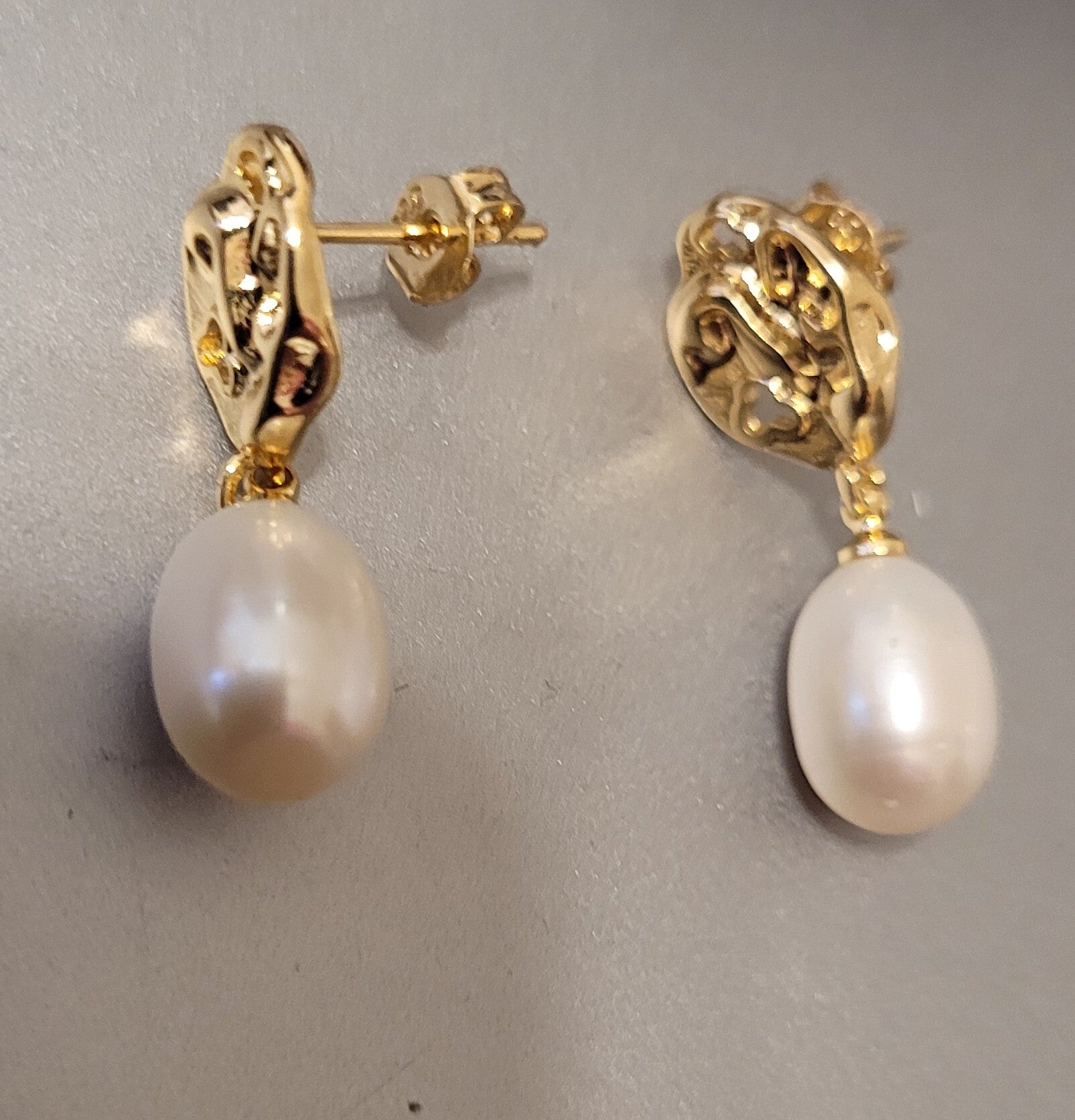 Boucles d'oreilles pendantes en Argent 925 doré or fin 24k perles naturelles de culture d'eau douce